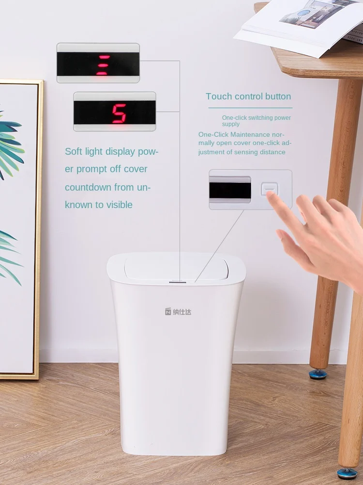 Product Name: سلة مهملات بلاستيكية ذكية, حاوية نفايات منزلية محمولة مقاومة للماء للحمام والمطبخ صندوق تخزين النفايات الصامتة