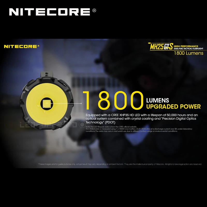 Product Name: سلسلة هجينة متعددة المهام Nitecore MH25GTS XHP35 HD LED عالية الأداء ثنائية الوقود 1800 لومن مصباح يدوي تكتيكي مع بطارية