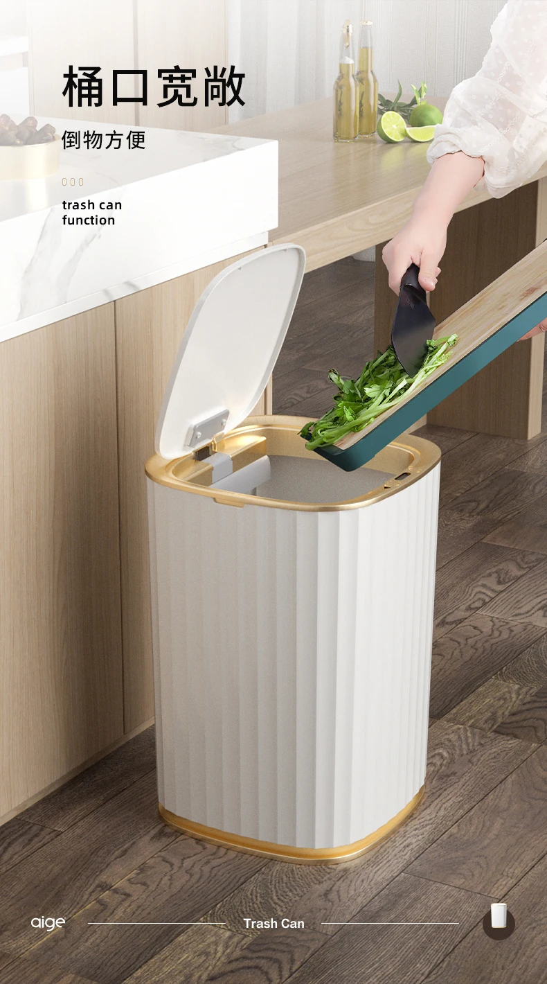 Product Name: الذكية التعريفي حاوية القمامة سلة كبيرة ورقة التلقائي الفاخرة حاوية القمامة غرفة نوم Basurero Cocina أدوات تنظيف المنزلية DF50LJT