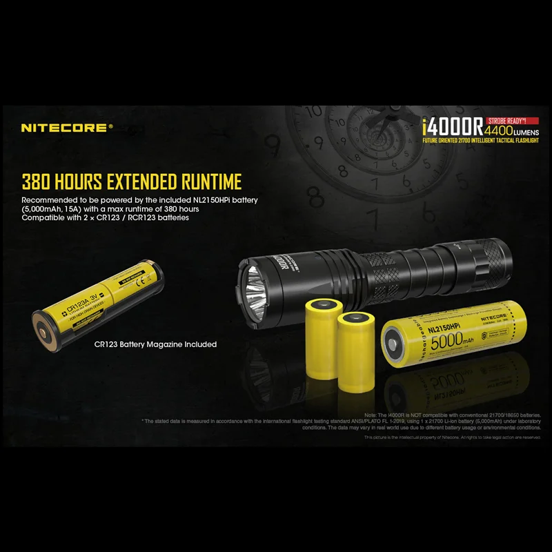 Product Name: الأصلي NITECORE I4000R التكتيكية مضيا قابلة للشحن 4400 لومينز تشمل NL2150 5,000mAh بطارية سوبر مصباح كهربائي فلاش شديد السطوع