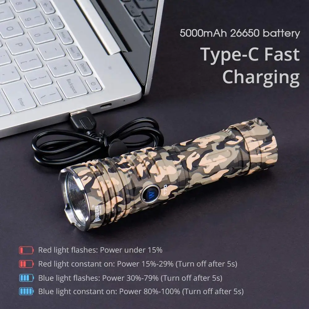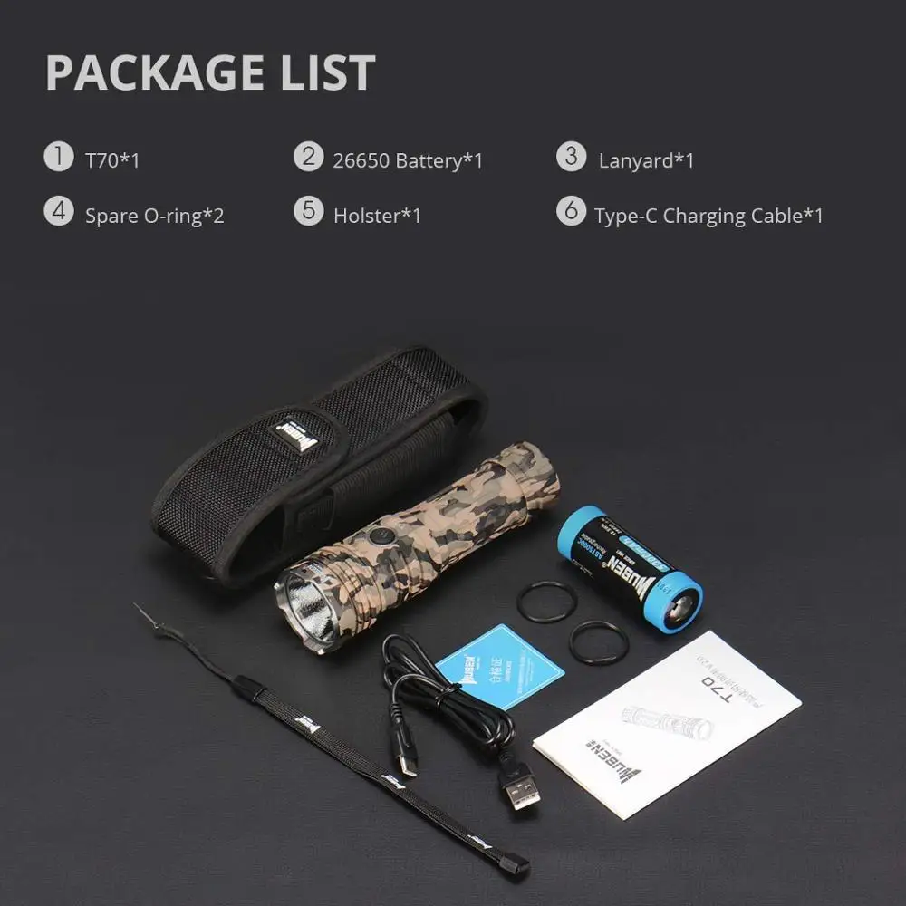 Product Name: WUBEN-مصباح يدوي LED عالي الإضاءة ، مصباح يدوي 4200 لومن CREE XHP70.2 قابل لإعادة الشحن من النوع C مع بطارية 26650 Li-ion T70