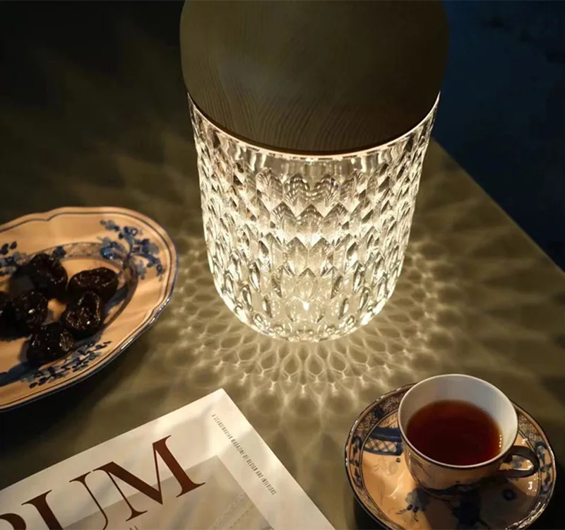 Product Name: 2021 كريستال أباجورة مصنوعة من الزجاج مع اللمس التبديل الإبداعية رومانسية صالون غرفة نوم مقهى بار جو أضواء قرص قابل للشحن