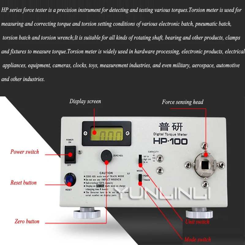 Product Name: جهاز اختبار عزم الدوران الرقمي ، قابل لإعادة الشحن ، 300 مرة ، دفعة كهربائية ، غطاء ، لمبة ، محرك ، مقياس عزم الدوران HP-100
