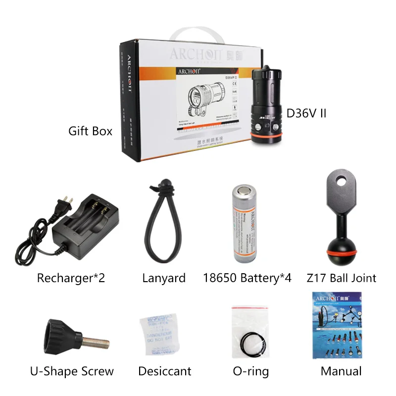 Product Name: D36V II المهنية الغوص التصوير ضوء HD الغوص الفيديو الضوئي الغوص مضيا تحت الماء 100 متر الغوص الإضاءة ملء ضوء