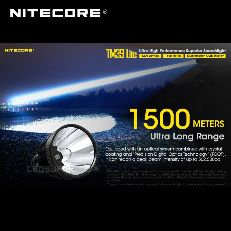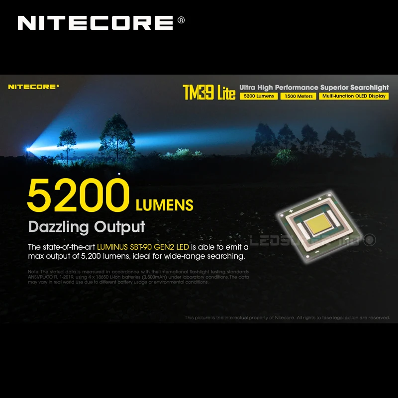 Product Name: OLED عرض Nitecore TM39 لايت مينوس SBT-90 GEN2 LED 5200 لومينز و 1500 متر ماكس رمي المصباح الكشاف