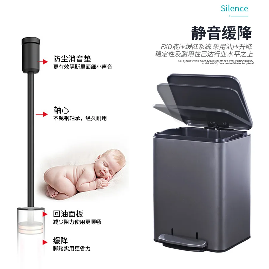 Product Name: حاوية قمامة من الصلب المقاوم للصدأ غرفة نوم سلة مهملات الحمام القمامة حاوية القمامة الذكية الدائمة ورقة سلة Cocina ديكور المنزل BI50WB