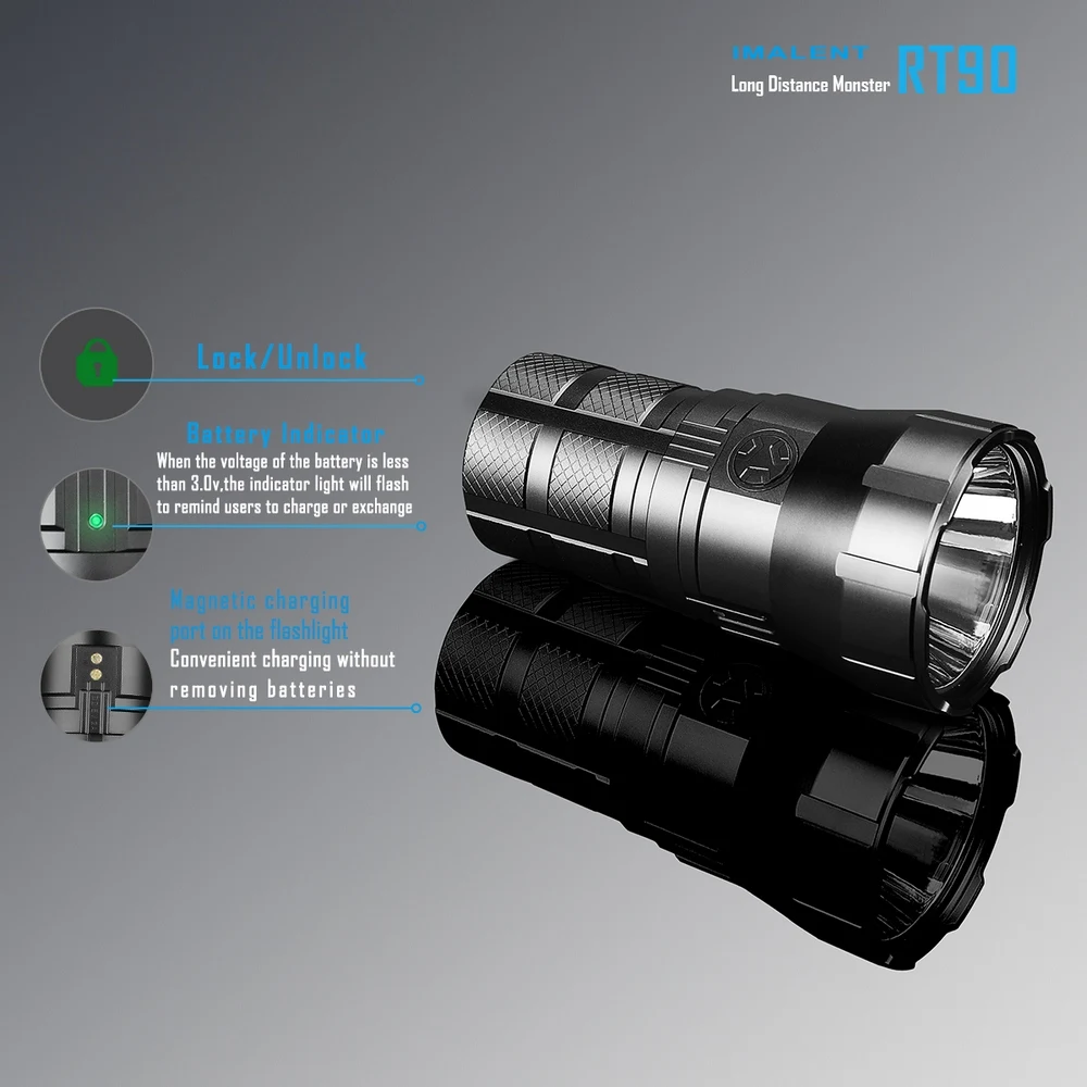 Product Name: IMALENT RT90 مصباح يدوي 4800 التجويف قوية مشرق الشعلة التخييم ضوء مقاوم للماء IPX-8 1308 متر قابلة للشحن 18500 بطارية 5 مستوى
