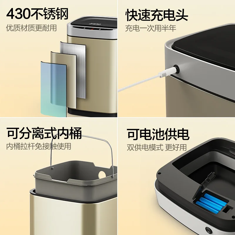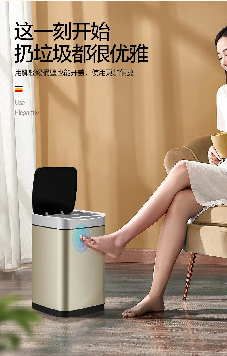 Product Name: المقاوم للصدأ علبة قمامة من الصلب الحمام 9L الشمال الذكية علبة مهملات سلة مهملات الذكية التلقائي مع غطاء أدوات تنظيف الإبداعية DA60LJT