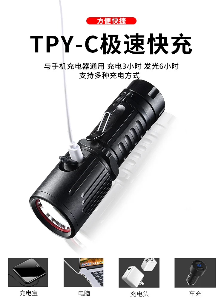 Product Name: مصباح يدوي أسود مقاوم للماء Usb قابلة للشحن طويلة المدى في الهواء الطلق مصباح يدوي محمول صغير Linteras التخييم الملحقات EI50SD