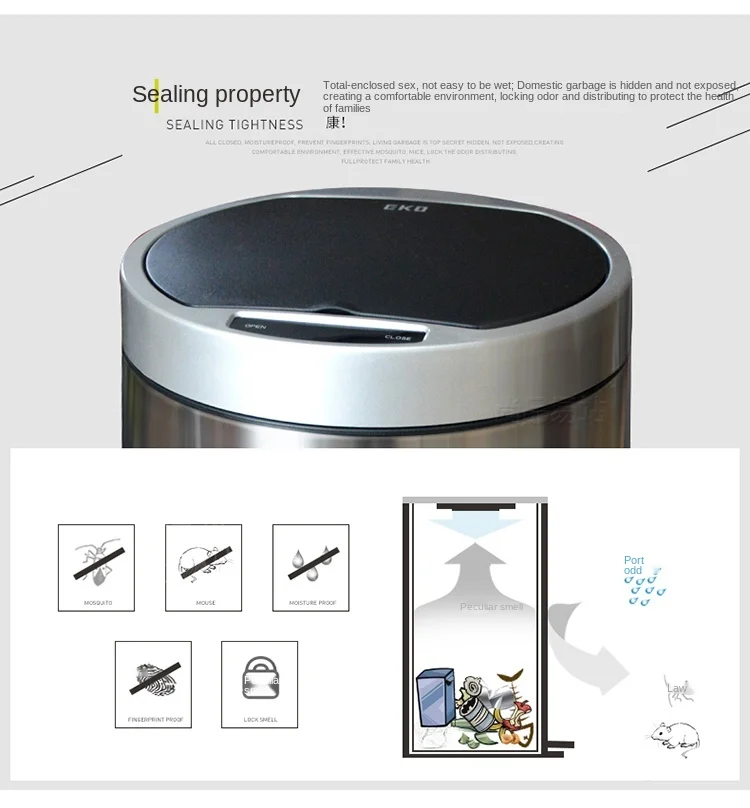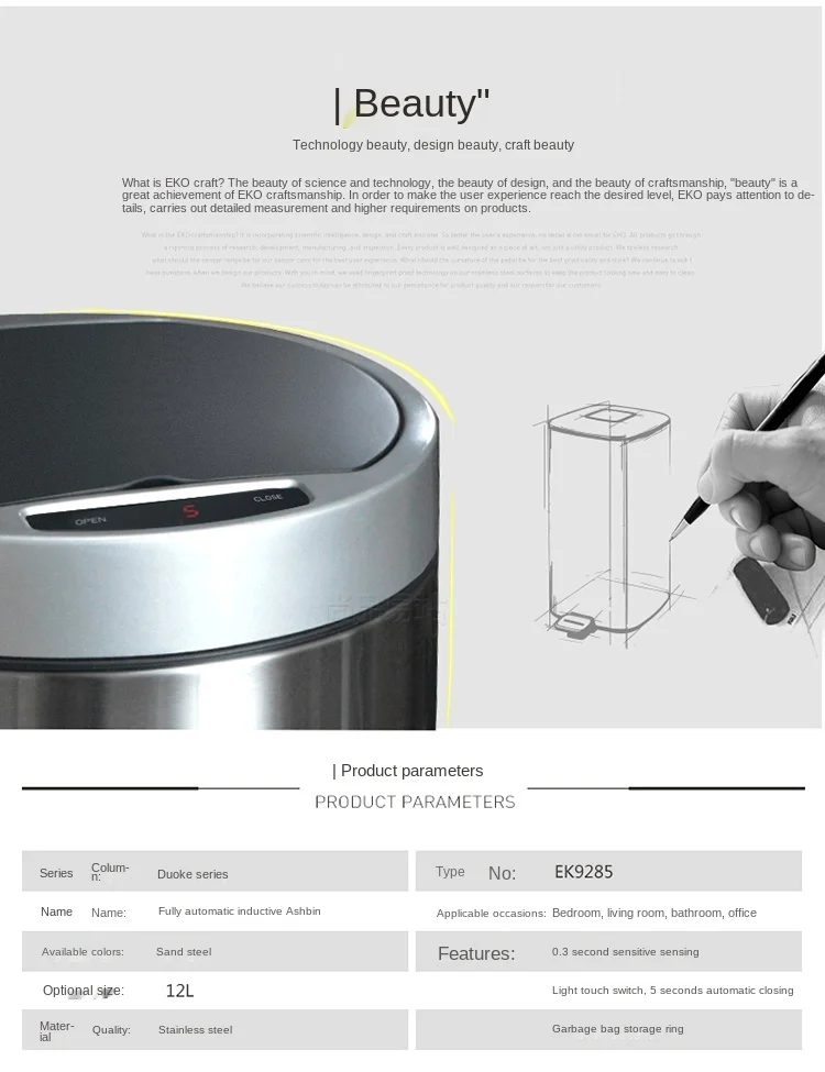 Product Name: Zq التلقائي التعريفي حاوية القمامة 12L المنزل المطبخ الذكية الأوروبية الإبداعية غرفة المعيشة غرفة نوم الفولاذ المقاوم للصدأ