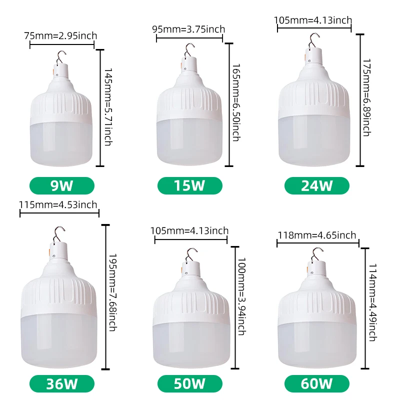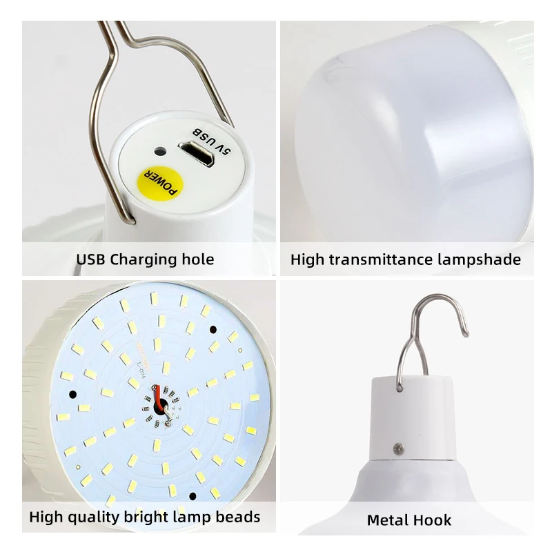 Product Name: 60 واط التخييم أضواء الطوارئ تنزه Usb شحن Led لمبة 60 واط قابلة للشحن قدرة بطارية عالية عكس الضوء المحمولة