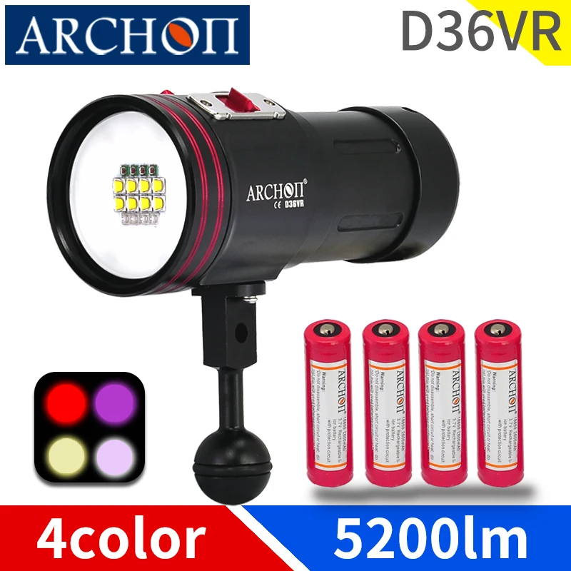 Product Name: D36VR الغوص التصوير أضواء الغوص فيديو مضيا UV دافئ الأبيض الأحمر الأرجواني الغوص ملء أضواء تحت الماء 100 متر الغوص الشعلة