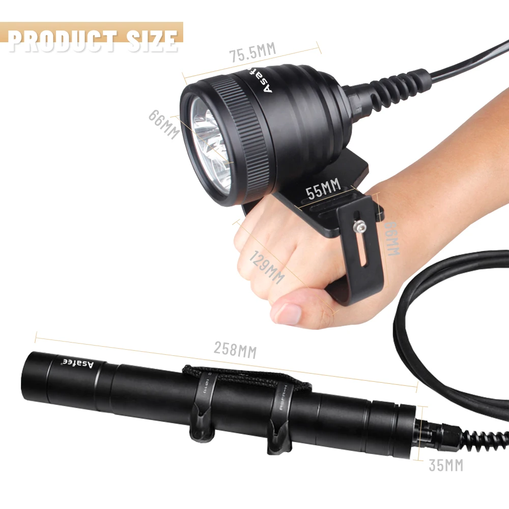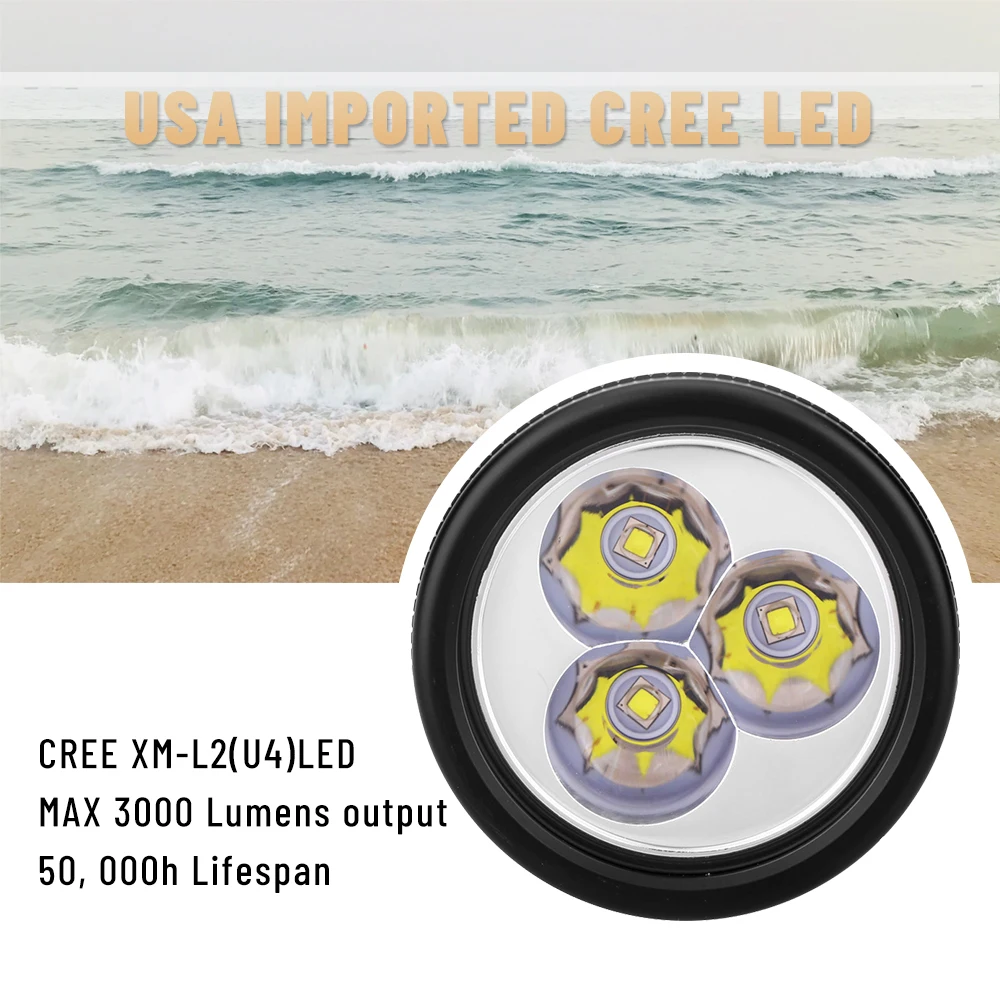 Product Name: علبة الغوص IPX8 مصباح غوص الشعلة 10 درجة كري XM-L2 U4 إضاءة مقاومة للماء أضواء الغطس علبة الغوص ضوء الأساسي