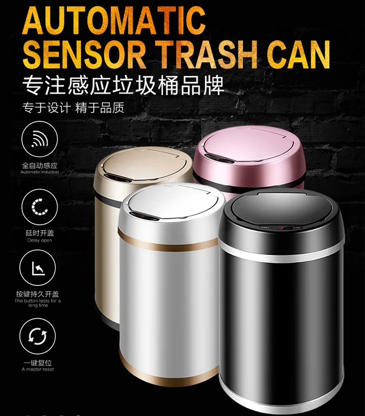 Product Name: ذكي التعريفي حاوية القمامة 9L المغلقة تماما تصميم مقاوم للماء شاشة تعمل باللمس شاشة ديجيتال غرفة نوم المنزل الذكية القمامة دلو