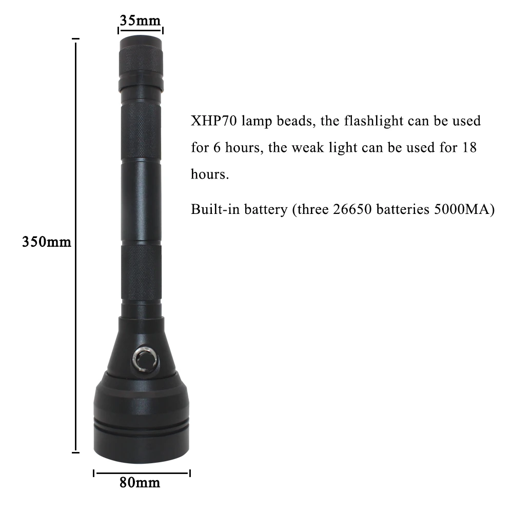 Product Name: XHP70.2 مصباح يدوي LED للغوص ، مقاوم للماء ، مصباح غوص 100 متر ، 3 × 26650 ، بطارية مدمجة قابلة لإعادة الشحن ، Xhp70 .2