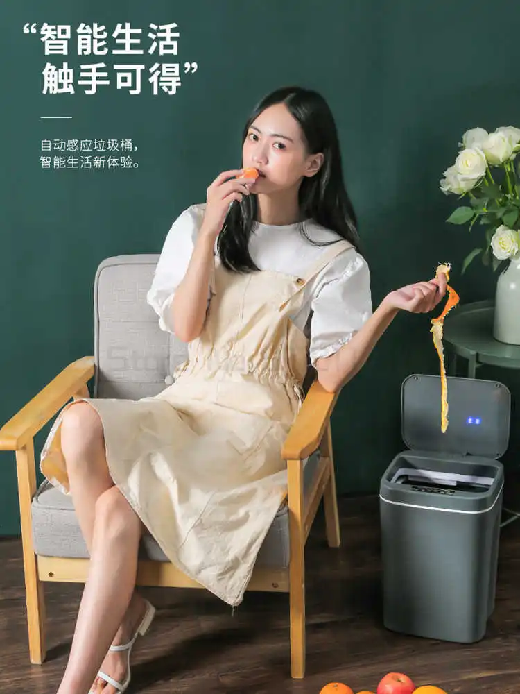 Product Name: حاوية القمامة الذكية التلقائي صندوق قمامة بجهاز استشعار الذكية الاستشعار سلة مهملات كهربائية المنزل القمامة يمكن للمطبخ الحمام القمامة