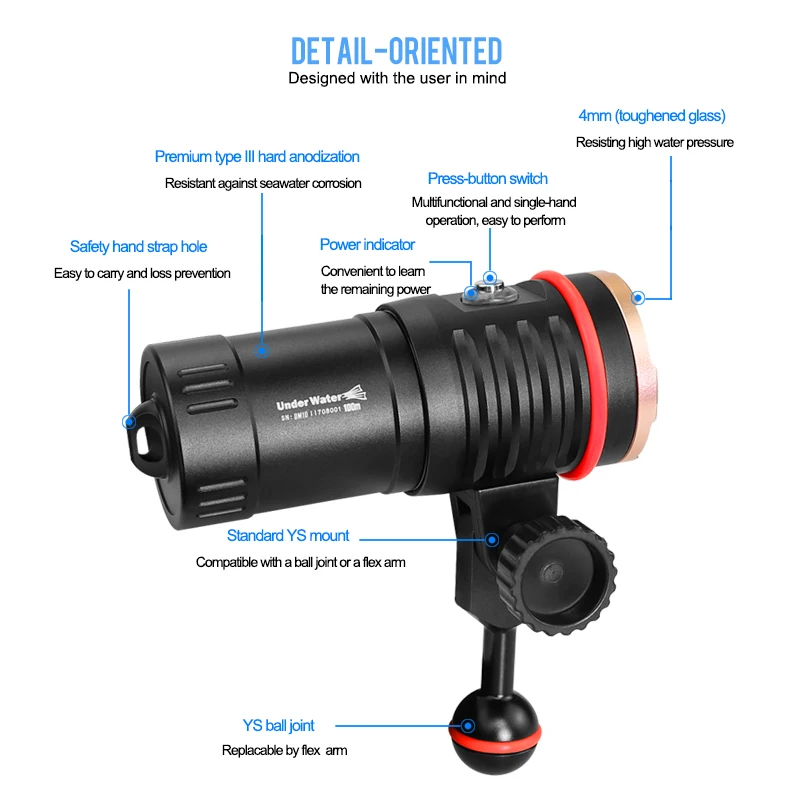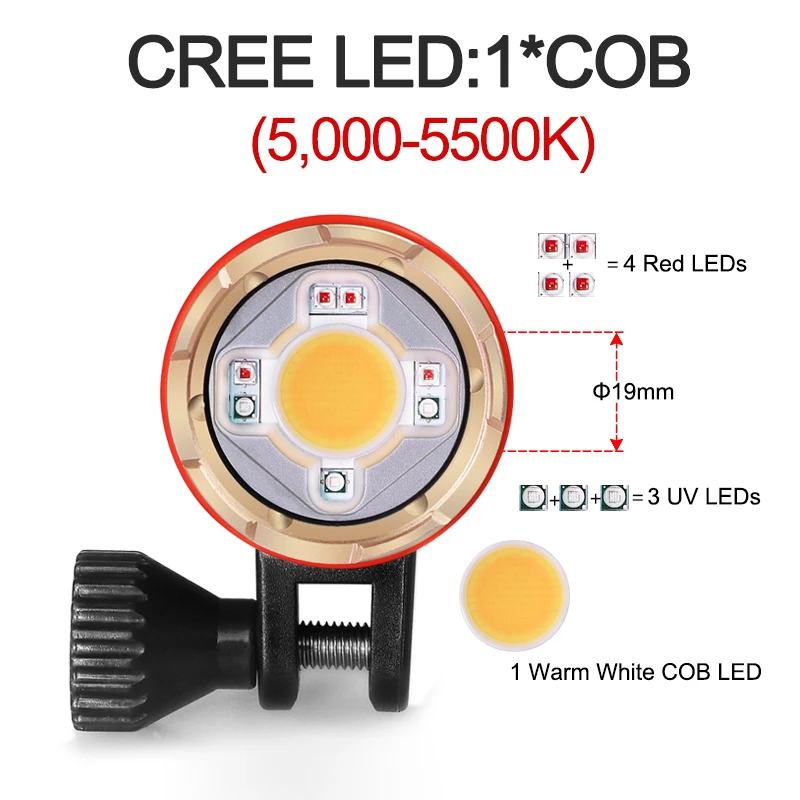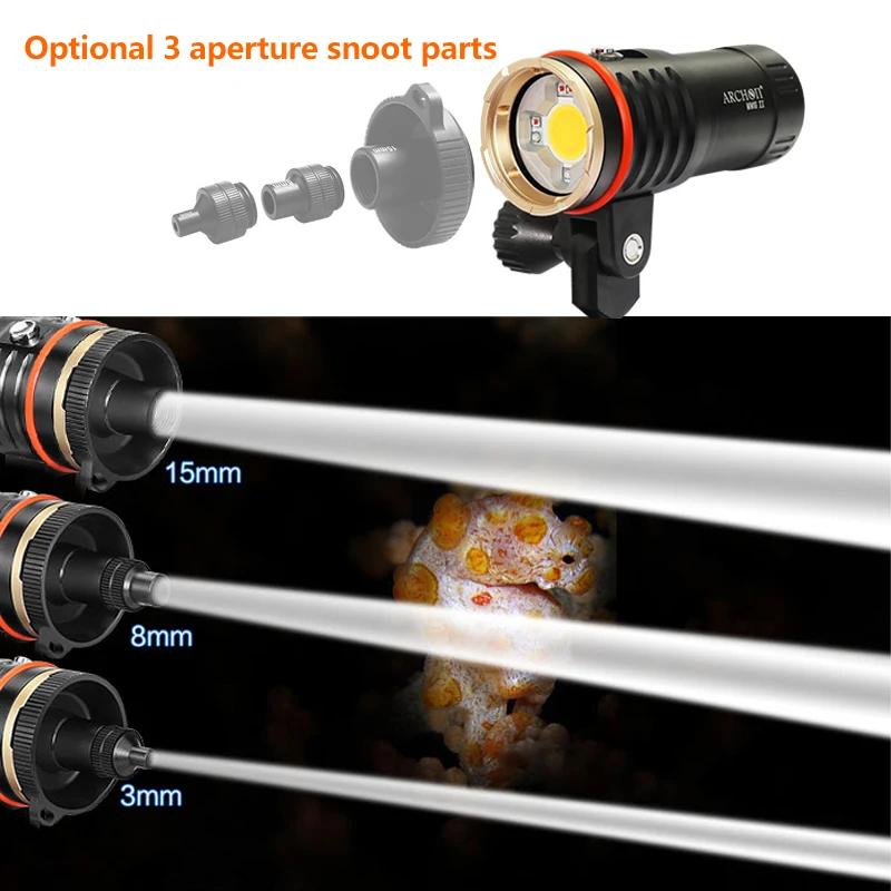 Product Name: DM10 II 5500K 3500 لومينز HD فيديو الغوص أضواء التصوير تحت الماء 100 متر الغوص أضواء الفيديو الأشعة فوق البنفسجية الأحمر ملء ضوء الغوص مصباح يدوي