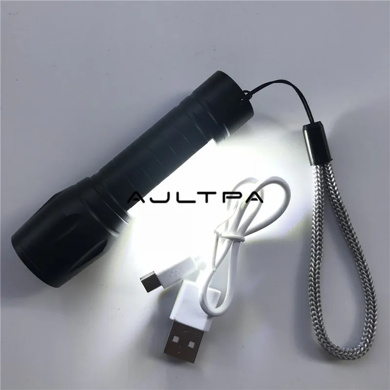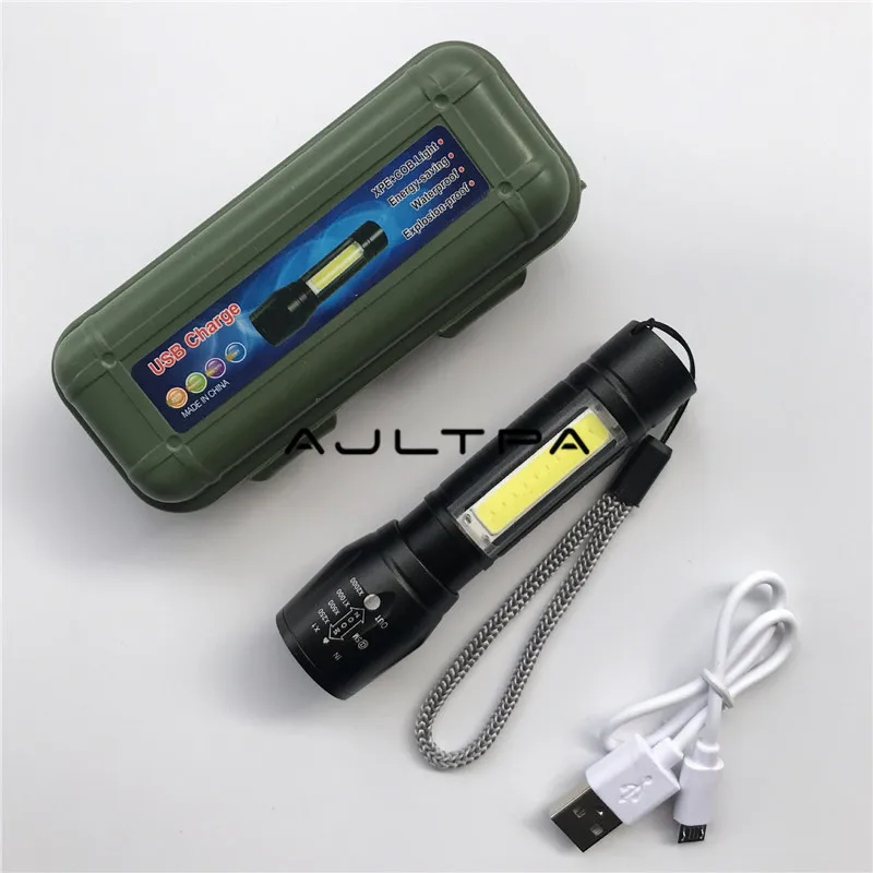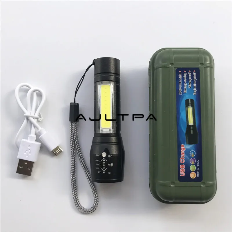 Product Name: 100 قطعة/الوحدة USB تهمة مصغرة المحمولة COB LED التكبير مضيا في الهواء الطلق الصيد الشعلة مع البطارية و كابل