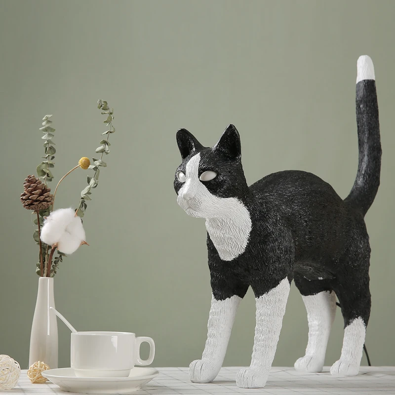 Special Offer الشمال الأسود الأبيض سيليتي القط الجدول مصباح الراتنج القط ضوء لغرفة النوم السرير الديكور الحيوان مصباح إضاءة المطعم لاعبا اساسيا Discount (58%OFF) Today!