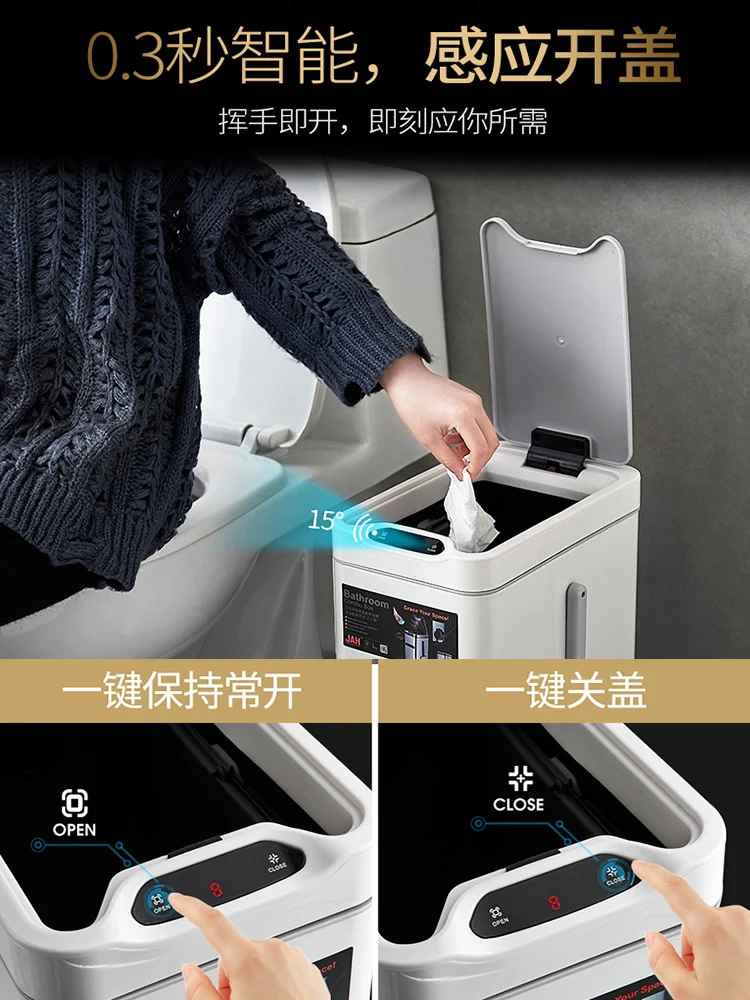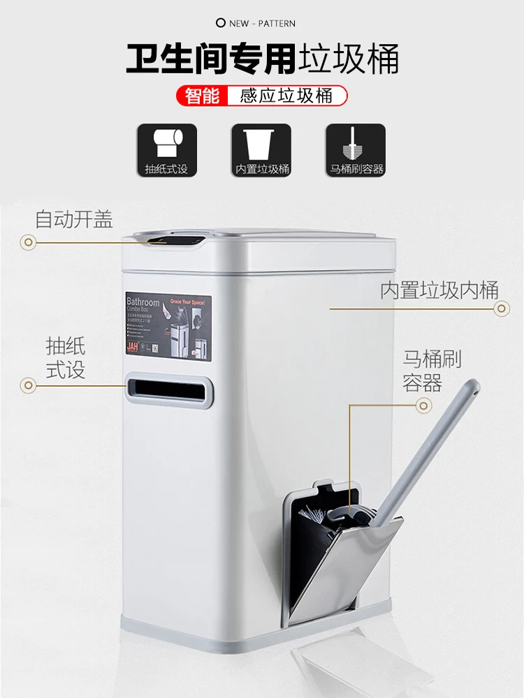 Product Name: سلة مهملات مرحاض ذكية سعة 7 لتر ، 3 في 1 ، مع غطاء ، مع فرشاة ، أوتوماتيكي ، قطعة واحدة