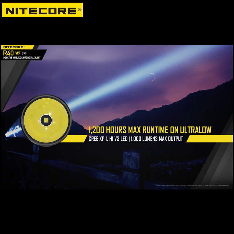 Product Name: الأصلي NITECORE R40V2 التكتيكية مضيا 1200 لومينز اللاسلكية قابلة للشحن مع بطارية 5000mAh 8 طرق الإضاءة Trcoh ضوء