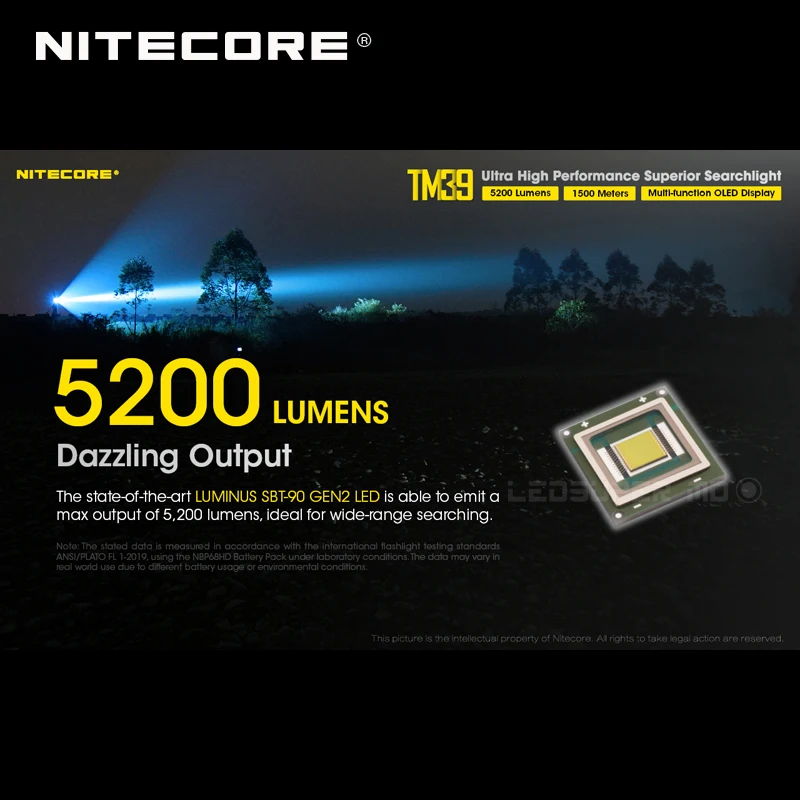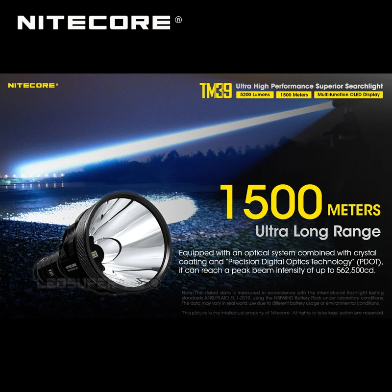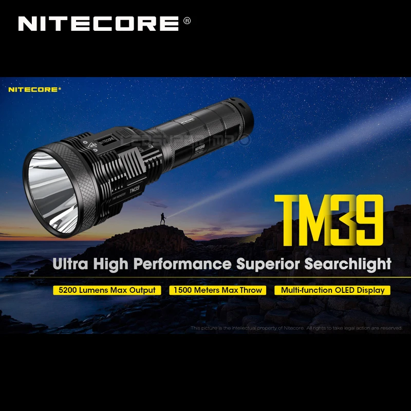 Product Name: مصباح يدوي Nitecore TM39 ، 1500 لومن ، 5200 متر كحد أقصى ، كشاف ، شاشة OLED متعددة الوظائف ، مع حزمة بطارية