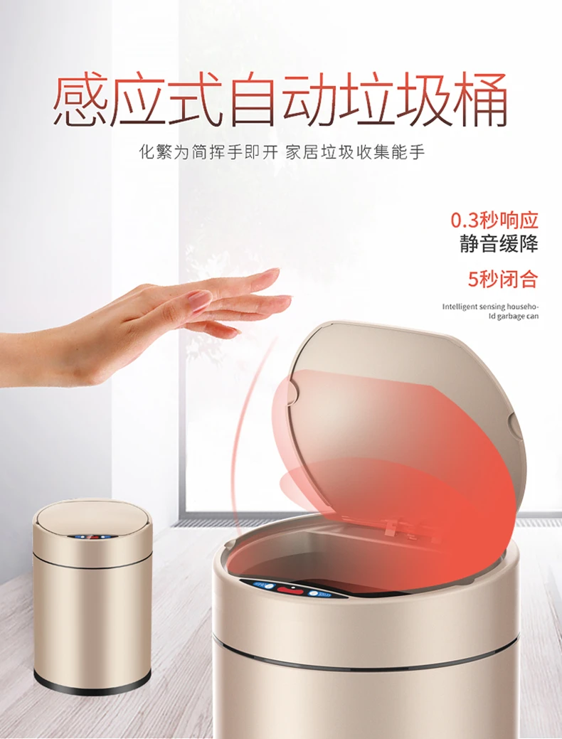 Product Name: حاوية القمامة الفاخرة الذكية الشمال الحديثة المطبخ حاوية القمامة تخزين الفولاذ المقاوم للصدأ التلقائي Poubelle دي المطبخ سلة مهملات BG50LL