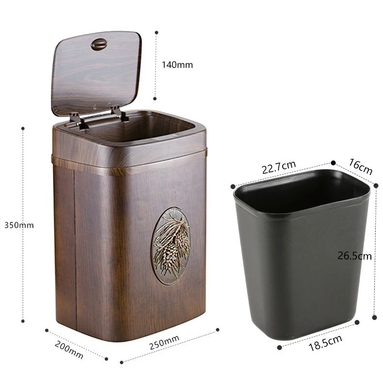 Product Name: سلة مهملات أوتوماتيكية لغرفة النوم سعة 8 لتر ، سلة مهملات كبيرة مع مستشعر ذكي ، صندوق خشبي عتيق بدون تلامس Cubo Basura ، حاوية نفايات بدون تلامس E5