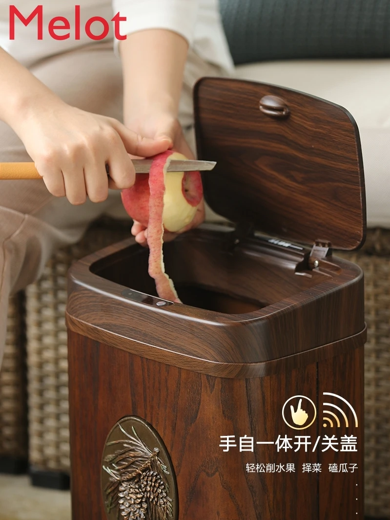 Product Name: الإبداعية الذكية حثي Ashbin المنزلية غرفة المعيشة والمطبخ الحمام التلقائي الكهربائية خشبي كبير مع غطاء حاوية القمامة