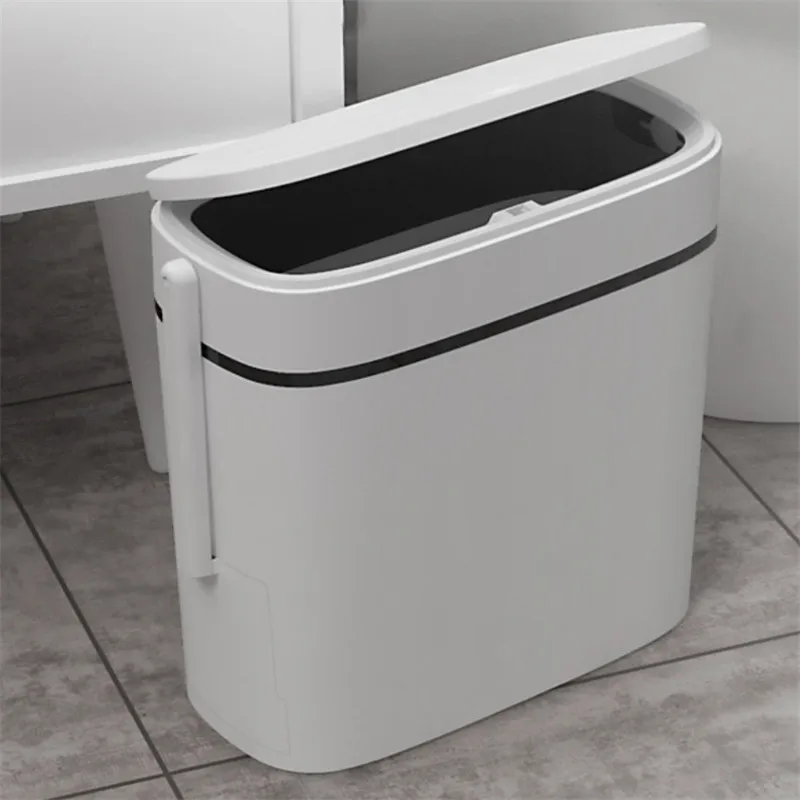 Product Name: الذكية 14L مفتاح واحد زر علبة مهملات يمكن للمرحاض مع فرشاة وغطاء الحمام المنزلية ضيق التماس حاوية القمامة صناديق القمامة النفايات