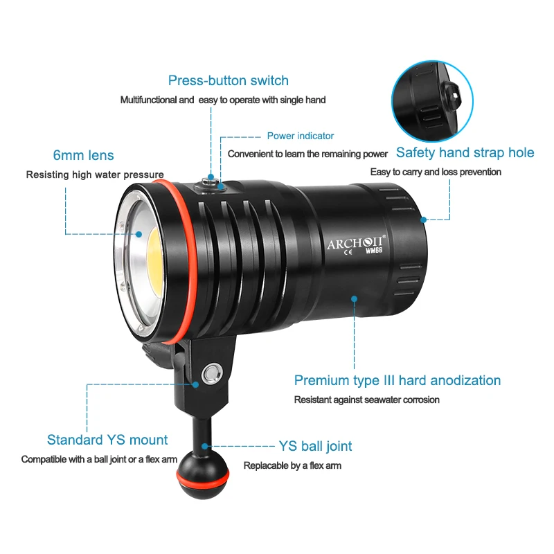 Special Offer الأصلي ARCHON DM60 5500k 12000LM HD فيديو الغوص أضواء Photoraphy تحت الماء 100 متر الغوص الإضاءة مصباح يدوي عالية مشرق الشعلة Discount (5%OFF) Today!