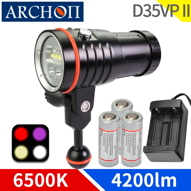 Product Name: D35VP II HD الغوص الفيديو الضوئي الدافئة الأبيض الأشعة فوق البنفسجية الأحمر الغوص صورة ضوء الغوص مصباح يدوي تحت الماء 100 متر ملء مصباح ضوء Dting