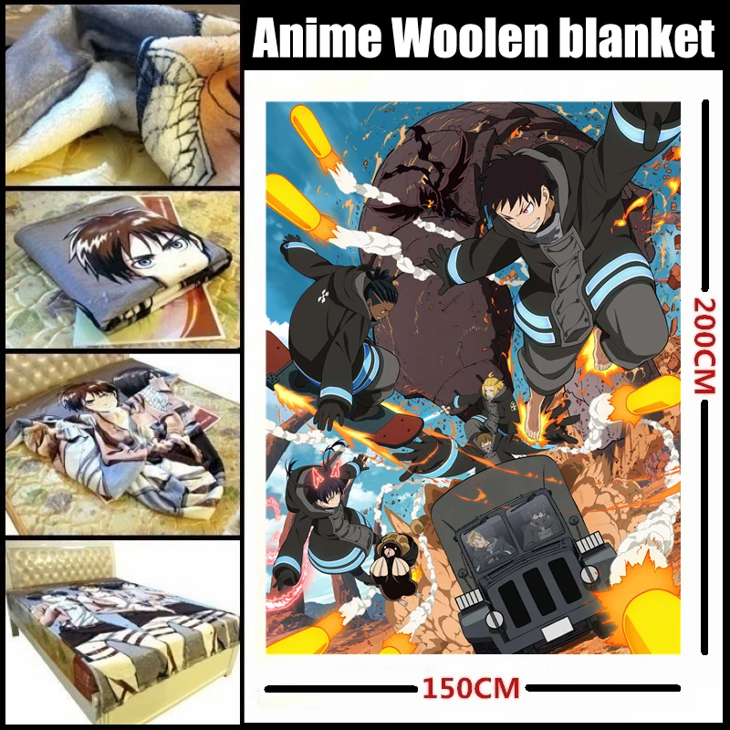 Product Name: بطانية صوف ناعمة ومريحة ، رسوم متحركة ، Fire Force Shinra ، ماكي ، تاماكي ، آرثر ، ملاءات ، استخدام مزدوج