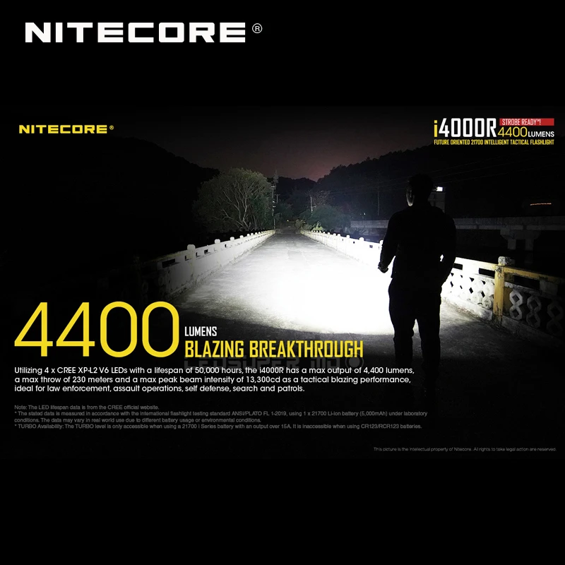 Product Name: مصباح يدوي ذكي موديل 4400 لومينز Nitecore I4000R 21700 مزود ببطارية بقدرة 5000 مللي أمبير في الساعة طراز NL2150HPi