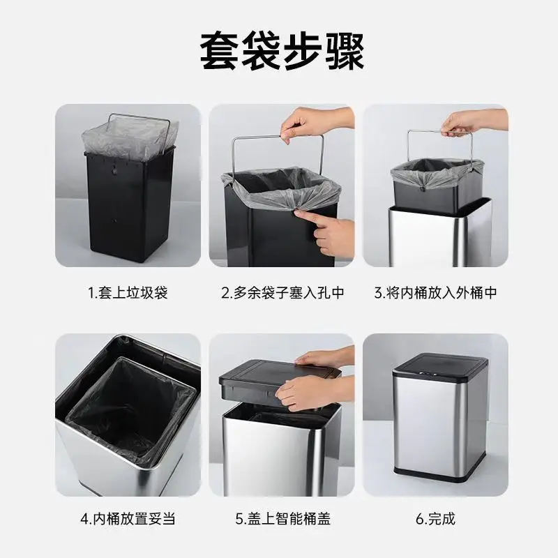 Product Name: الذكية المقاوم للصدأ علبة قمامة من الصلب الشمال التلقائي علبة مهملات مع غطاء الذكية الحمام سلة مهملات Kosz نا Smieci تنظيف أداة DA60LJ